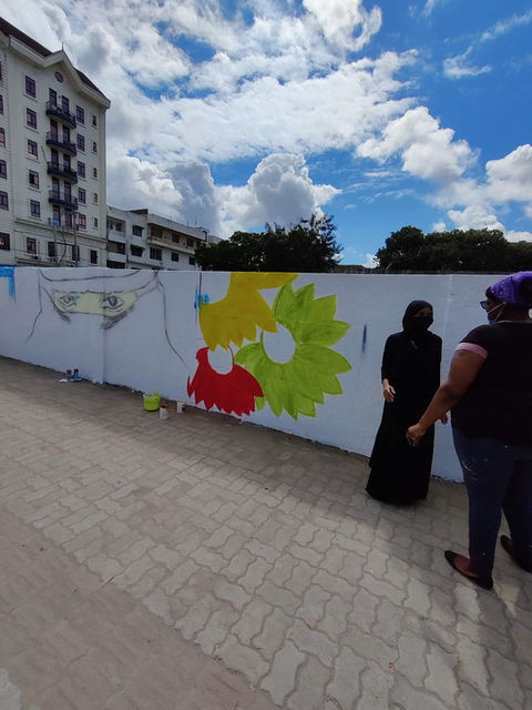 Art & Soul Collective from Mombasa received a grant from EUNIC Kenya, collaborating with Graffiti Girls Kenya. They hosted a workshop called "Girls and Graffiti" to encourage women's involvement in public art. Maryam Suleiman and Smokillah, founder of Graffiti Girls, were instrumental in leading the initiative. Together, they created a stunning wall mural titled "Women in Mombasa." This collaboration empowered women artists and inspired others to explore public art.